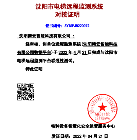 電梯物聯(lián)網(wǎng)設(shè)備通過沈陽市電梯遠(yuǎn)程監(jiān)測(cè)系統(tǒng)驗(yàn)證